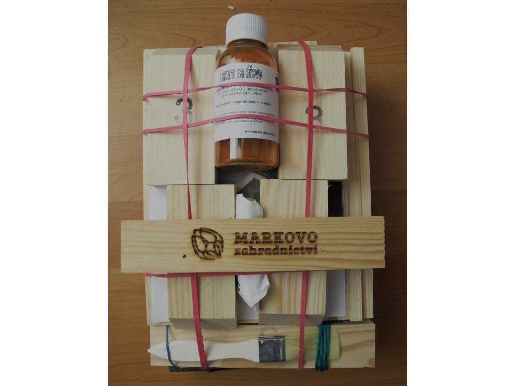 Stavebnice je pro přepravu zabalená v jutovém pytli, který se dá dále využít.