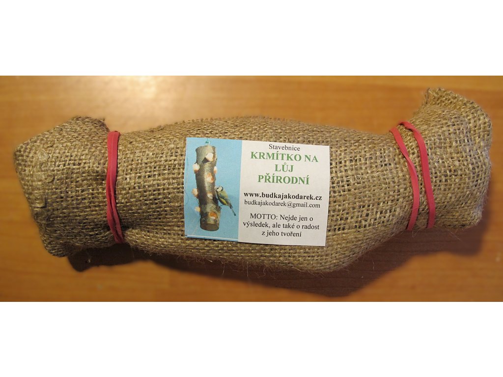Pak už zbývá jen koupit v řeznictví lůj nebo nesolený špek, nacpat jej do děr a krmítko zavěsit. Lůj v naplněném krmítku vydrží okolo 2 týdnů, tak je to i alternativa pro ty co by nestačili doplňovat zásoby v klasickém krmítku - nebo třeba na chatu.